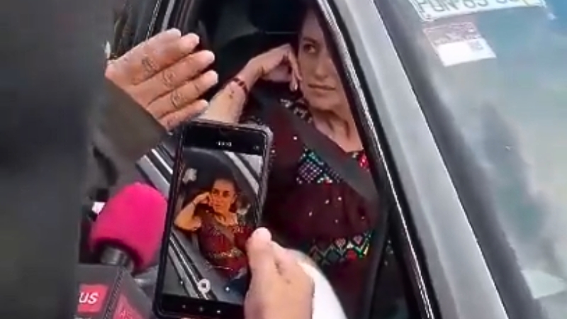 La candidata presidencial Claudia Sheinbaum es retenida brevemente en un incidente en Chiapas; cuestiona la presencia de un único medio crítico en el lugar.