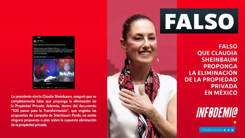 Sheinbaum aclaró que tales acusaciones carecen de fundamento y responden a una campaña de desinformación. «No hay, ni ha habido, en nuestro programa de gobierno, ninguna propuesta que contemple la eliminación de la propiedad privada. Este tipo de rumores solo buscan sembrar incertidumbre y desconfianza entre la ciudadanía», afirmó la presidenta electa.