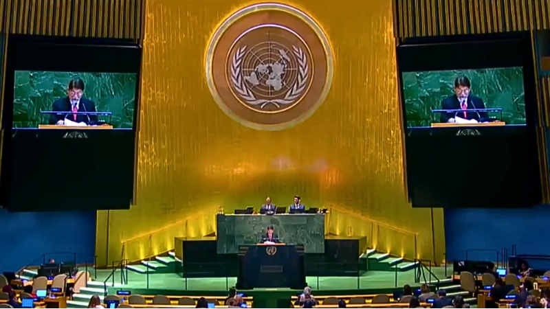El canciller Denis Moncada alerta en la Asamblea General de Naciones Unidas sobre la encrucijada histórica entre la vida y la muerte para los pueblos del mundo.